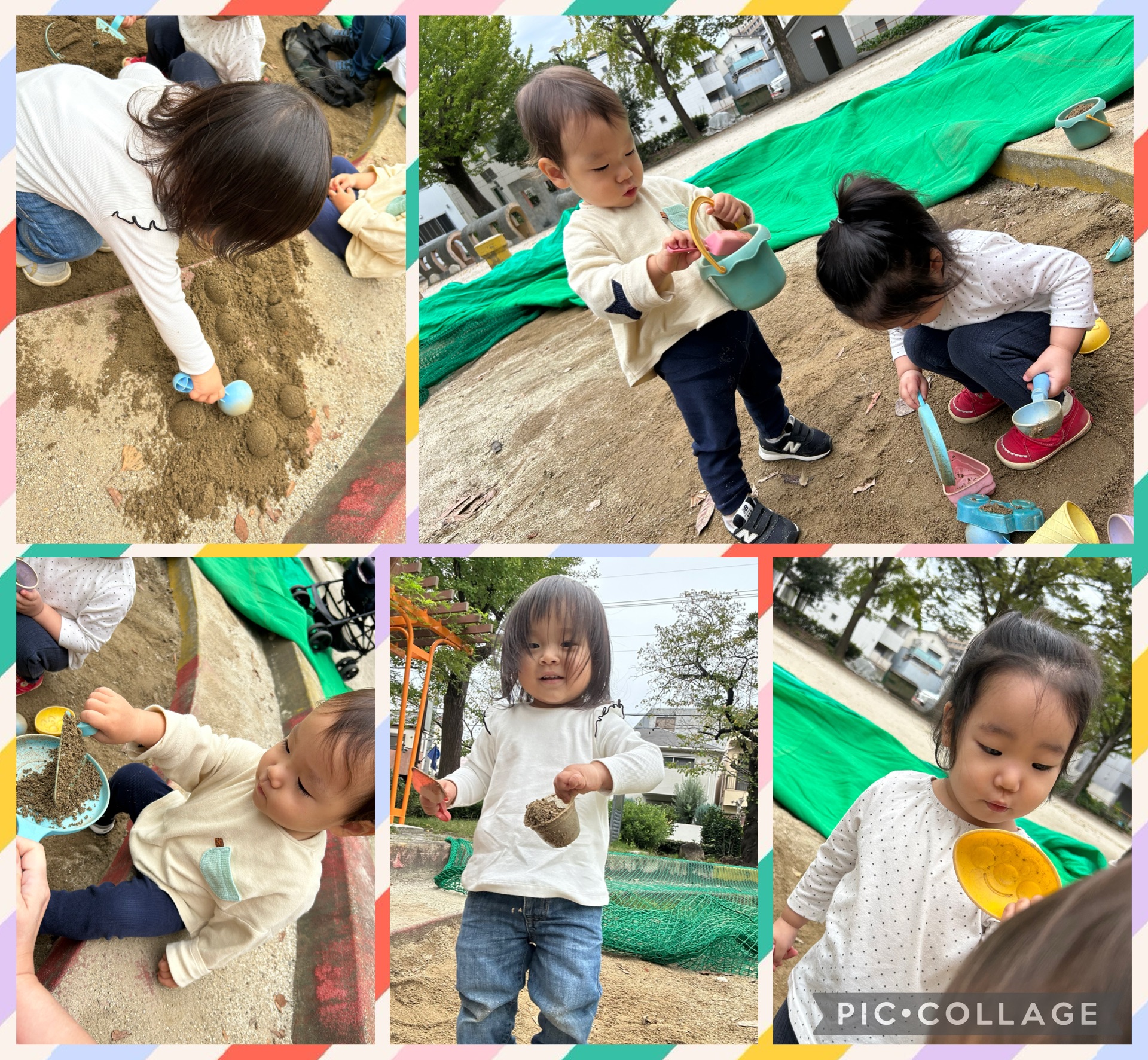 今日は仲田公園へ。お砂場はもちろん、滑り台ブランコ汽車の遊具コーヒーカップ♪(๑ᴖ◡ᴖ๑)♪ 先生も一緒に遊ぶのに夢中で、写真が少ししかなくてスミマセン(T-T) お砂場では、他の園のお友達とも仲良く遊べていてほっこりでした(*^^*) 1時間15分たーっぷり遊び倒してきたので、お昼寝ベッドに入ったら溶けるようにそのままスヤスヤ眠りにつき、2時間しっかりお昼寝した園児さん達でした(笑)