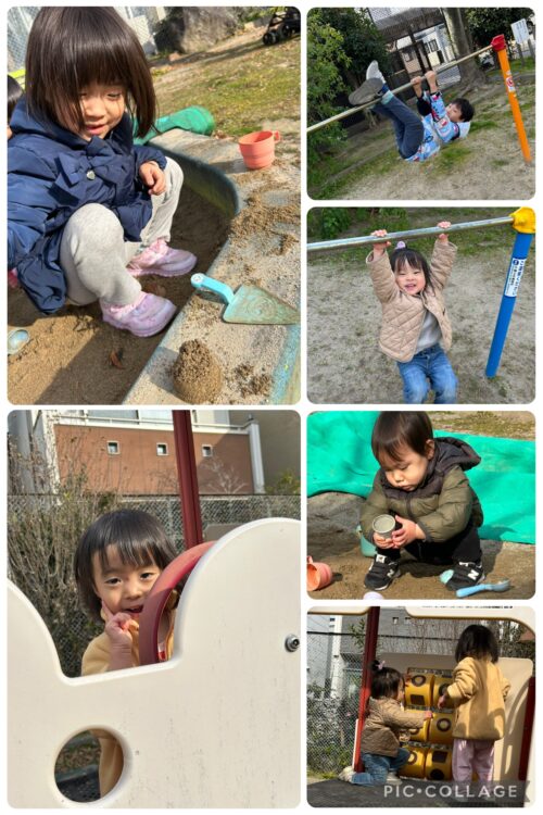 若竹公園へ♪(๑ᴖ◡ᴖ๑)♪ 2026.01.17 いつも通り公園出発したのですが、仲田公園は他の保育園児さんでいっぱい!年中さん?年長さん?くらいの子供たちが30人くらいで。。。さすがに危険かなぁと判断し、今日は若竹公園まで足を伸ばしてきましたよ。いつもと違う遊具でわーっ!と盛り上がったあとは、やっぱり大好きなお砂遊びに落ち着くアップルっ子たちなのでした♪(๑ᴖ◡ᴖ๑)♪ 1/15のメニューは。。。 ・ソーセージと白菜のクリームシチュー ・ミニオムレツ ・いちごヨーグルトのゼリー でした。