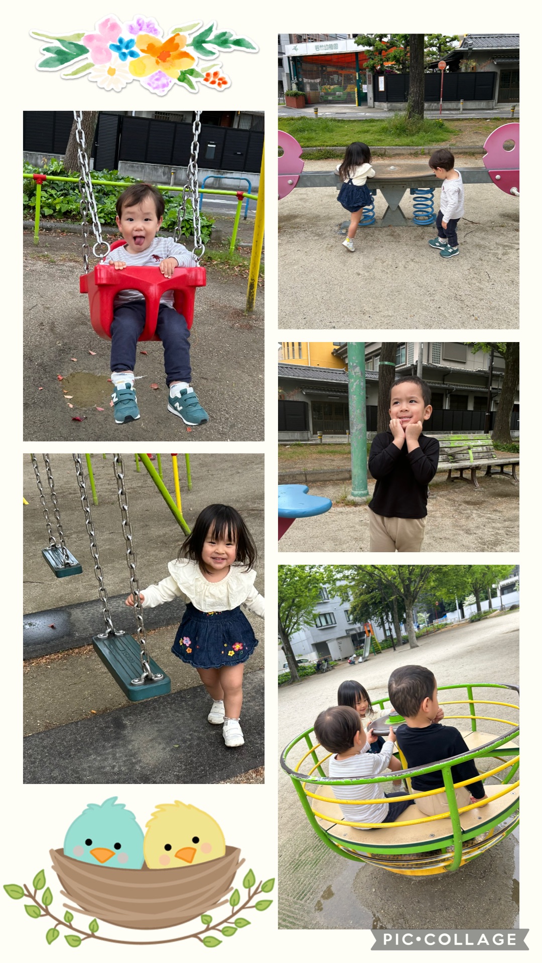 気持ちのいい陽気!こんな日は公園へ♪(๑ᴖ◡ᴖ๑)♪ 雨上がりでぬかるんでるところもありましたが、園児さんたちは元気に走っていました(笑) ブランコ、シーソー、コーヒーカップ🎵 今度はお砂遊びもしようねー♪(๑ᴖ◡ᴖ๑)♪